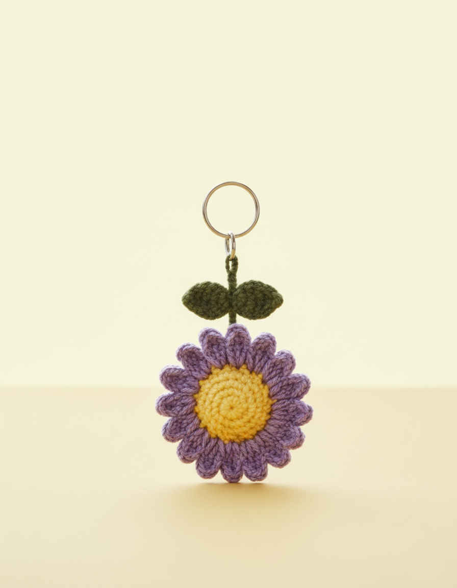 Handmade crochet daisy flower keychain, perfect for adding a playful and aesthetic touch to keys, bags, or backpacks. Lightweight, durable, and cute, this floral accessory makes a thoughtful gift for friends or a charming personal accessory for everyday use.