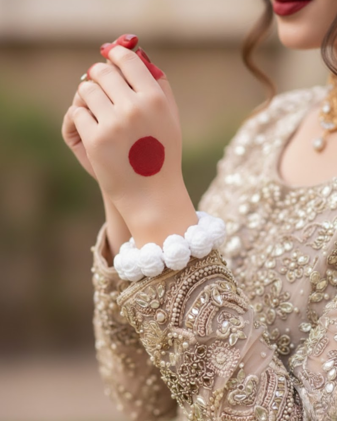 Delicate white crochet gajras that bring timeless elegance to any occasion. Hand-crafted with care, these charming floral strands feature intricate crochet work in a pristine white shade, perfect for weddings, festivals, or everyday wear. The soft, lightweight design sits beautifully around the wrist or neck, adding a touch of traditional grace with a modern twist. Ideal for those who appreciate handmade artistry and classic beauty.