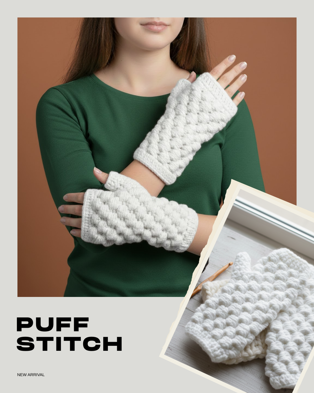 Puff Stitch Fingerless Crochet Mittens